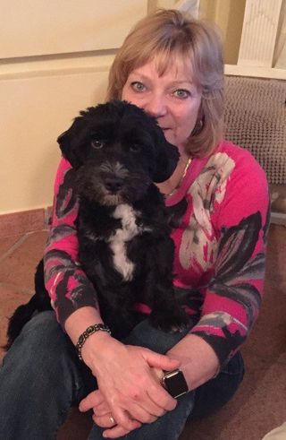 : One morning, in a group of new arrivals was a small timid black puppy. Their bond wasn’t instant, as the nervous and shy creature would often run and hide. Over many days and weeks Jo helped William become used to human contact and gained both his trust and affection. “I’m bringing him home” she told her husband. He too was delighted, as they had recently decided that a dog would be a splendid addition to their ‘family’ which already included three cats.